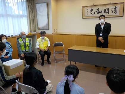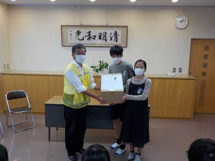 9月22日(木)に反射材贈呈式が行われました。全校を代表して、6年生の児童が反射材を受け取りました。秋から冬へと、暗くなる時刻が早まります。事故に遭わない、事故を起こさないためにも、反射材を使用して、交通安全に努めます。