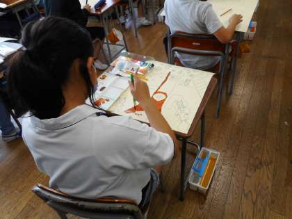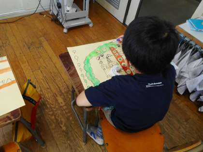 図画工作の学習で、木になっていたら素敵なものを想像して描いています。