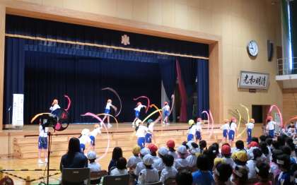 校内学習発表会がありました。全校のみんなにかっこいい姿を見せようと張り切って演技をしていました。