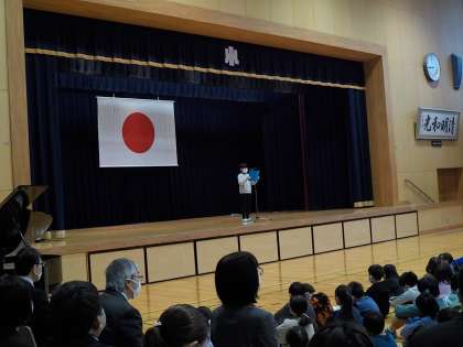 6年生の代表児童が三学期がんばりたいことを全校に話しました。