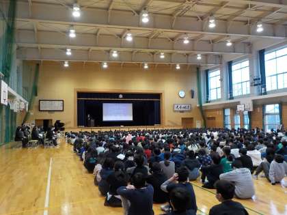 校長先生から「1年は365日、8760時間、31536000秒です。1秒で発することのできる言葉を大切にしましょう」というお話がありました。