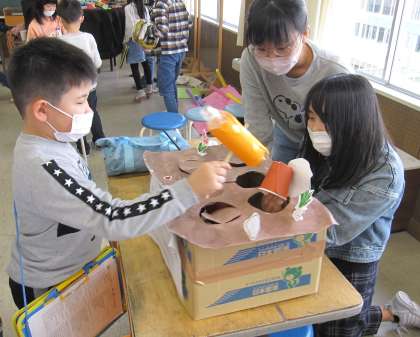 6年生が開催してくれた堀南フェスティバルに行ってきました。いろいろなゲームに挑戦し、楽しい休み時間になりました。