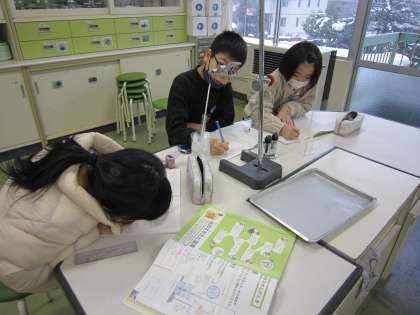理科の学習で、水が温度を下げることによってどう変化するかを実験しました。