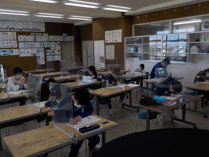 学力向上を目指し、6年生で習った学習を復習しています。みんな真剣に取り組んでいます。