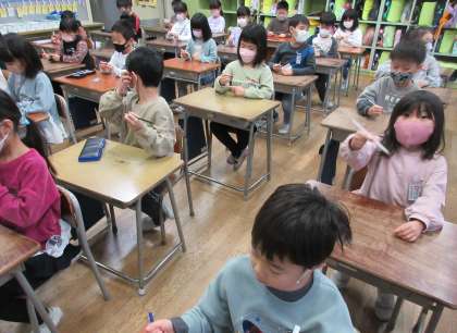 朝学習の前に、よい姿勢と正しい鉛筆の持ち方を確認しました。