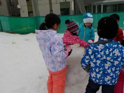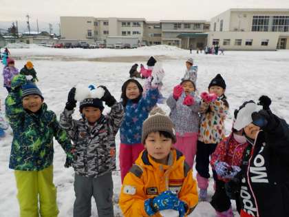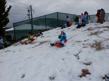 ふわふわの雪ではありませんでしたが、子供たちはこの時期独特の雪や氷を楽しんでいました。