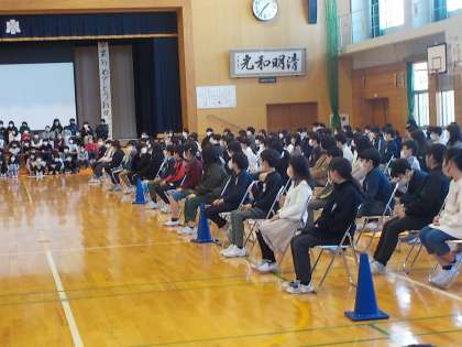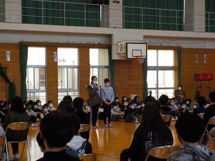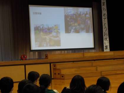 5年生の集会プロジェクトが中心となって、卒業を祝う集会を行いました。