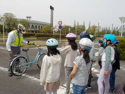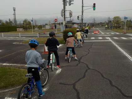 子供たちは、自転車に乗ってコースを回りながら、交通ルールやマナーについて学びました。