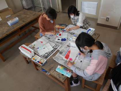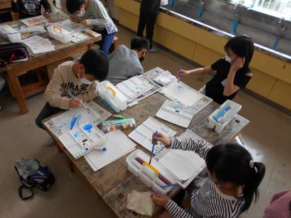 5年生になって、初めての図画工作の様子です。いろいろな「心」を模様で表しています。