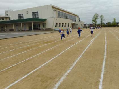 運動会に向けて、徒競走の練習をしてます。速く走るために腕をしっかり振ったり、目線に気を付けたりして頑張っています。