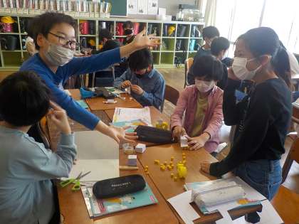 体積を求めるにはどうしたらよいか考え、ブロックの数で比較することに決めました。体積の求め方の原理原則を大切にして考える子供たちでした。