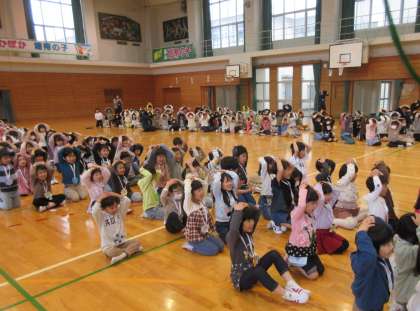 上学年から、集会でダンスの披露やメダルのプレゼント、放送でのお祝いメッセージなどのお祝いをしてもらっています。