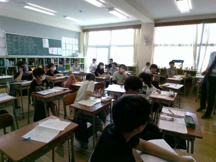 小数のかけ算を学習しています。みんなで意見を出し合い、真剣に考えていました。