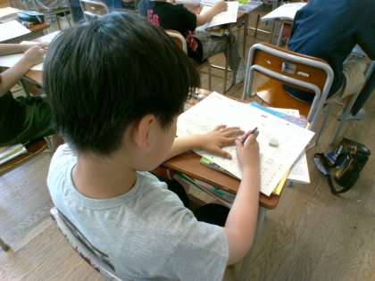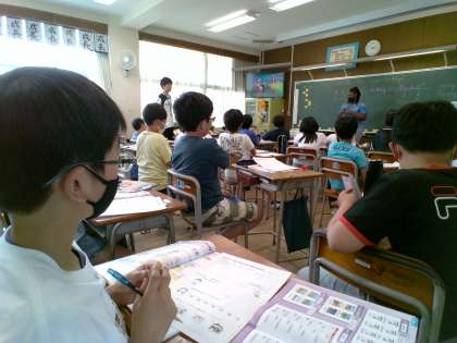 低い土地で暮らす人々の工夫について学習しています。授業の終わりには4年で学習したことを復習する時間を取り、定着を図っています。
