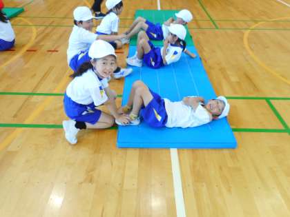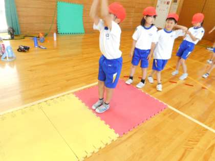 体力テストの練習をしています。今日は上体起こしと立ち幅跳びにチャレンジしました。