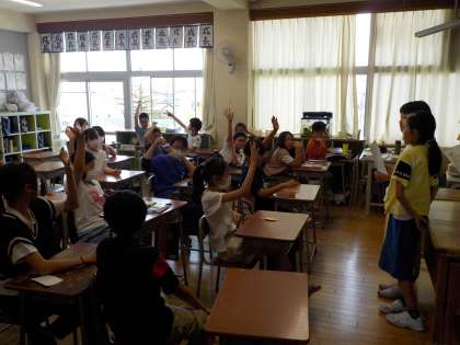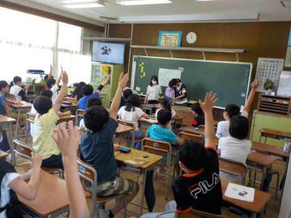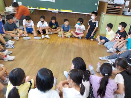 今日は、子供たちが企画したおたのしみ集会をしました。それぞれの係の出し物をみんなで楽しんで取り組みました。