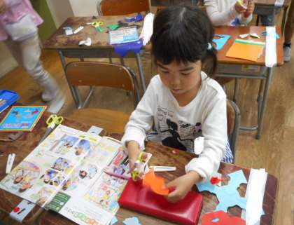 自由に切って、一人一人好きな模様になるように頑張りました。