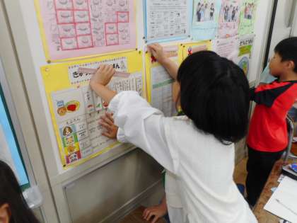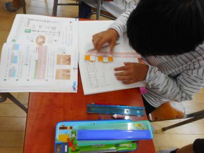 算数科で長さの学習をしています。教室の中のいろいろなものの長さを調べています。