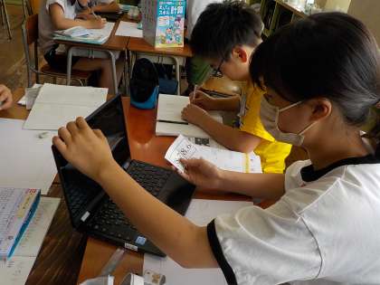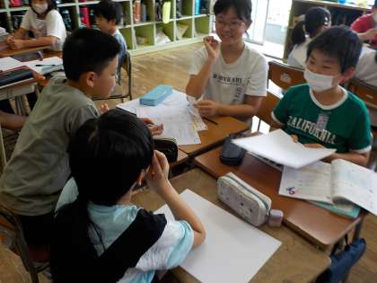 割り算の問題を班で作り、みんなで解きました。割り算の仕組みを理解して作ることは意外に難しかったと感想を述べながらも、楽しみながら仲間と協力して取り組むことができました。