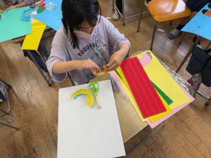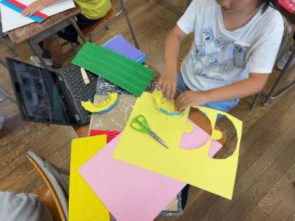図画工作科では、方眼紙等でビー玉を転がすコースを作っています。