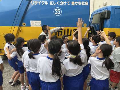 3R推進スクールでは、ごみの分別方法やごみを少なくする方法、ごみ収集車の仕組みや役割を学びました。