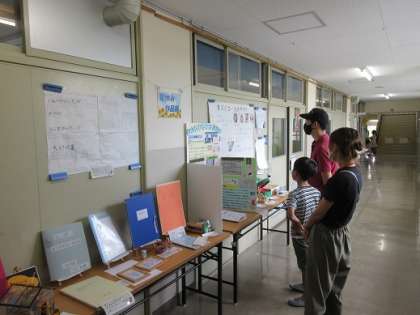 9月1日まで15:20〜16:20の時間、夏休みの作品展を開催しています。夏休みに作成した自由研究や工作等、子供たちの力作を展示しています。一人一人の個性と努力が作品から伝わってくる楽しい展示になっています。