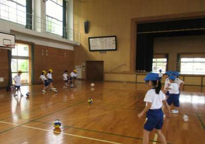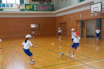 体育科の学習では、ボールけり遊びの学習をしています。相手がとりやすいボールを意識し、蹴り方や力の加減等を工夫しています。