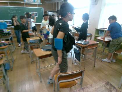 総合的な学習の時間に、福祉について学習しています。今日は、高齢者体験セットを使用して、体験活動を行いました。サポーター等を装着した、いつもと違う感覚から、コミュニケーションの仕方について考える機会となりました。