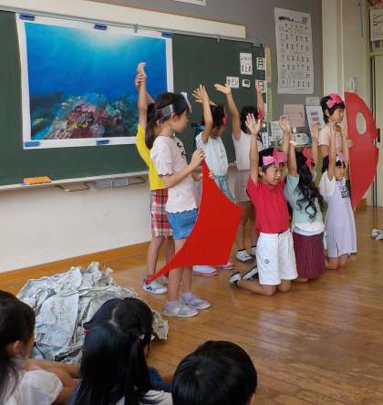 今日は、スイミーの音読劇をしました。各クラス心一つに頑張ることができました。