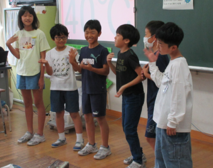 学習の発表会では、総合的な学習の時間に取り組んできたエコ活動について劇やスライドでの発表を行いました。