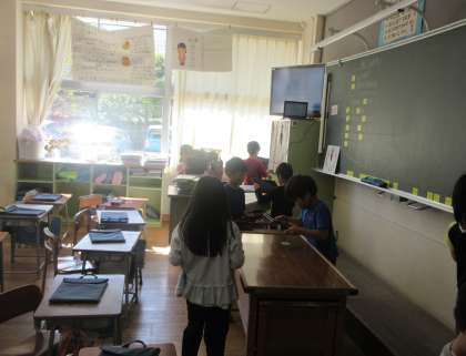 クロムブックの扱いにも慣れてきて、頑張って写真をとっています。楽しそうに探す様子が素敵でした。