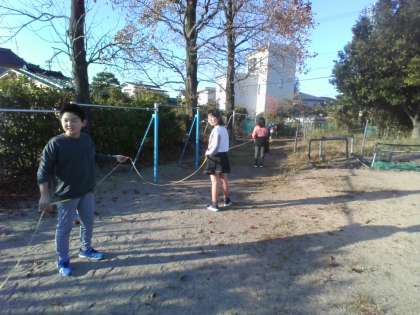 算数科の学習では、グラウンドの面積を測るために、様々な図形の面積の求め方について学習してきました。今日は、今まで学んだことをもとにグラウンドの面積を実際に測り、面積を求めました。仲間で協力して「はやく」「正確に」「かんたんに」求められるよう頑張りました。