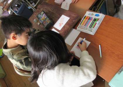 国語科の学習で、ものの名前について学習しています。どんなお店があって、どんな品物が売っているのかを考えて楽しんで活動していきたいです。