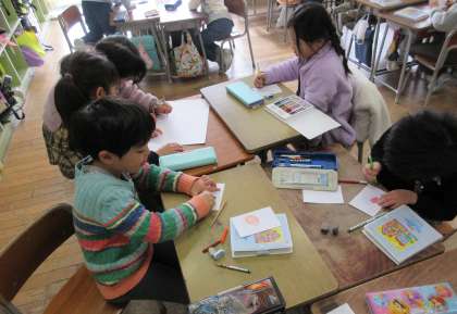 国語科の学習で、ものの名前について学習しています。どんなお店があって、どんな品物が売っているのかを考えて楽しんで活動していきたいです。