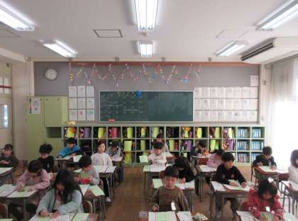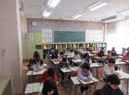 始業式の日に、書き初め大会を行いました。子供たちは「金賞をとるぞ」と意気込んでおり、冬休みの練習の成果を発揮できるように集中して取り組んでいました。