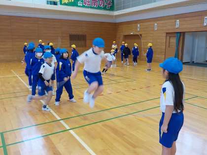 体育の学習では、長縄運動に取り組んでいます。
