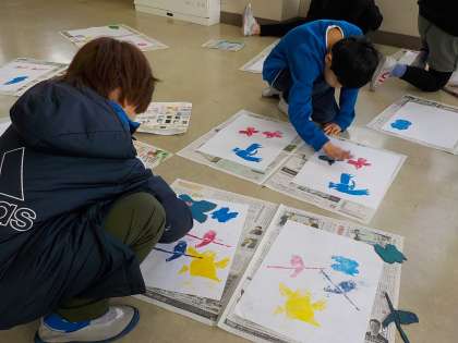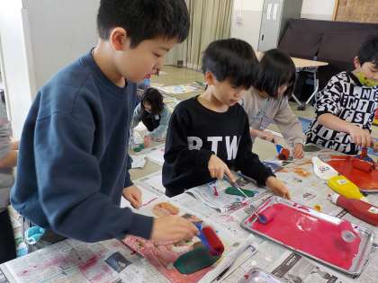 配置や色を考え、楽しみながら作品づくりに取り組む子供たちでした。