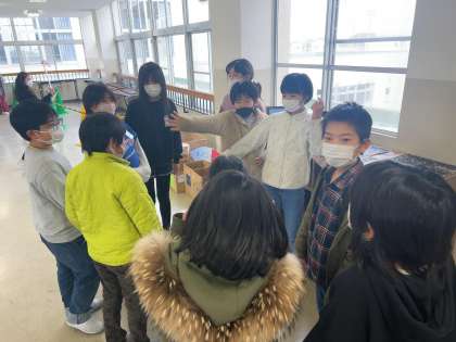 総合的な学習の時間では、「環境問題」について全校に広めるための取組をしています。