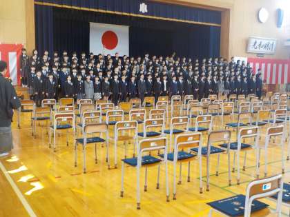 卒業式が行われました。保護者のみなさんや地域の方々、在校生に見守られる中、堂々と卒業証書をもらうことができました。呼びかけや歌に、一人一人が一生懸命取り組んでいました。