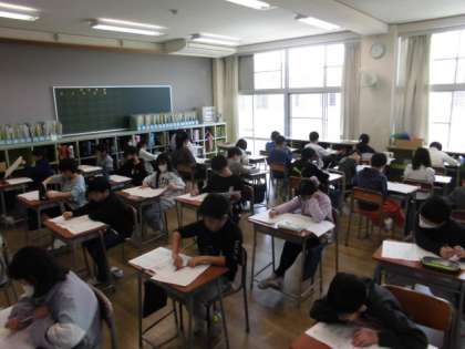 4月10日(水)、3〜6年生が、県の学力調査に取り組みました。