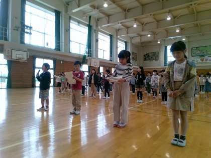 来週の「入学おめでとう集会」に向けて、学年練習をしました。1年生のときに踊った「ツバメ」を思い出しながら、元気に踊りました。