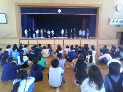 運動会に向けて、団リーダーの発表をしました。仲間の堂々とした姿に頼もしさを感じました。
