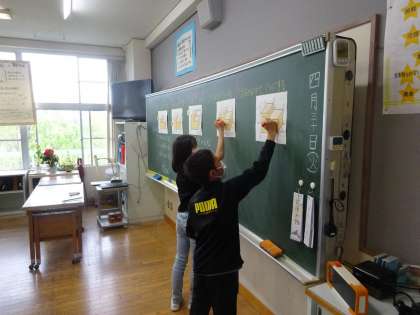国語科では友達にインタビューをしています。算数科では、体積について学習しています。