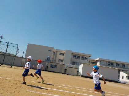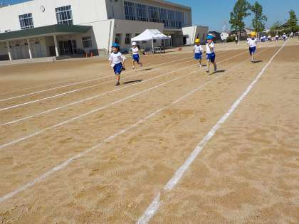 運動会に向けて50m走の練習をしました。一生懸命に走りました。