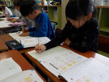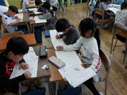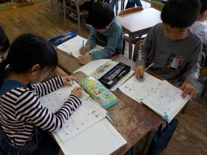 算数「引き算の筆算」では、ポイントを意識しながら解いたり、友達と協力したりしています。