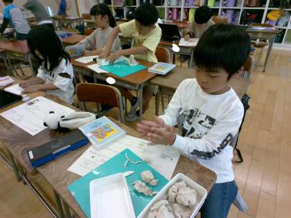 クロムブックや図鑑で生き物などを調べたり、粘土を使って立体で表したりしました