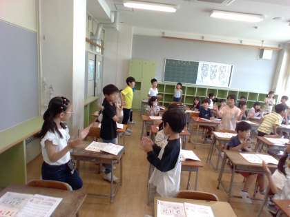 授業の終わりには、ジャンケン列車をして楽しんでいます。