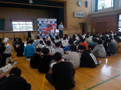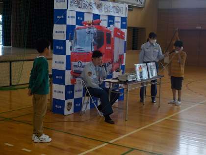 BFCバッジ授与式や防火教室がありました。子供たちは消防署の方の話を聞き、火災予防についての意識を高めました。