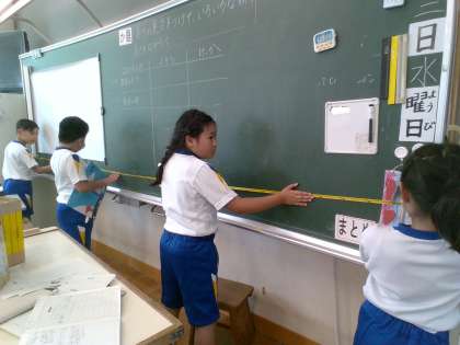 まきじゃくをつかって、いろいろな物の長さをはかりました。