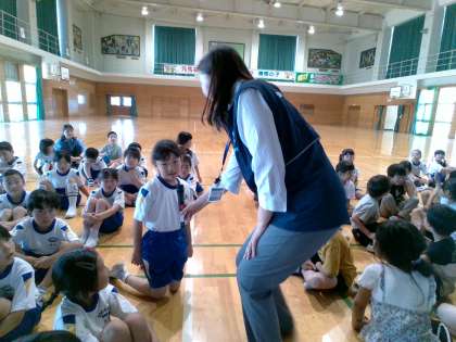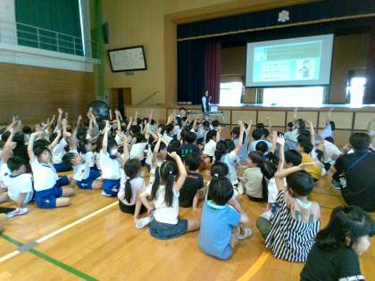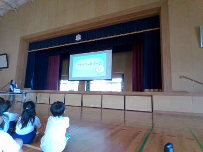 今日は、富山県警の少年サポートセンターの方を講師に迎え、「くもくん教室」がありました。「プライベートゾーン」は自分だけの大事な場所であること、なにか困ったことがあったら相談することなど、子供たちは真剣に耳を傾けていました。